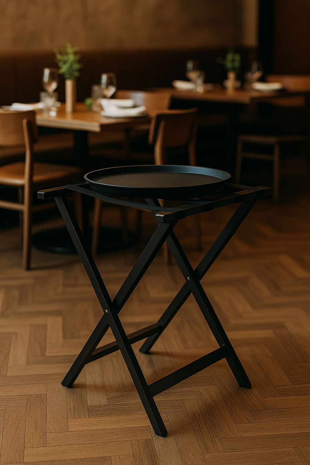 Solido, elegante e di design, è la soluzione ideale per supportare vassoi in modo stabile e professionale.