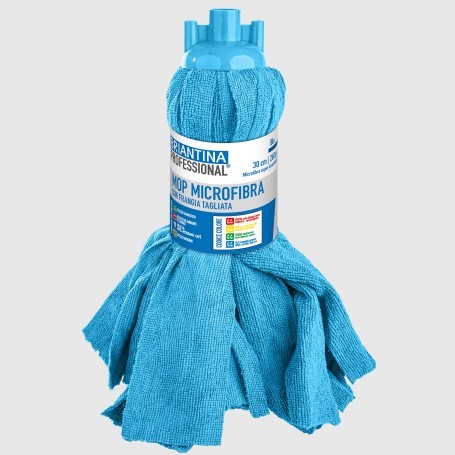 Mop a frangia tagliata in microfibra blu da 260 g, ideale per una pulizia profonda e assorbente. Perfetto per uso professionale e domestico, con alta capacità assorbente e resistenza ai lavaggi