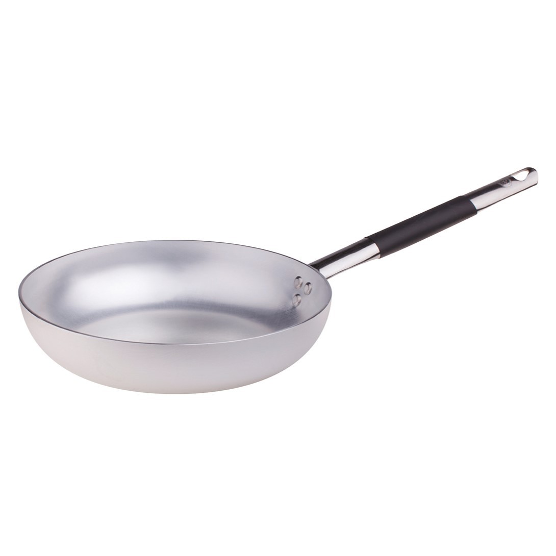 La padella svasata alta Cool di Agnelli, con un diametro di 28 cm, spessore di 3 mm e un manico ergonomico dotato di guaina isolante, è ideale per cotture uniformi e precise.