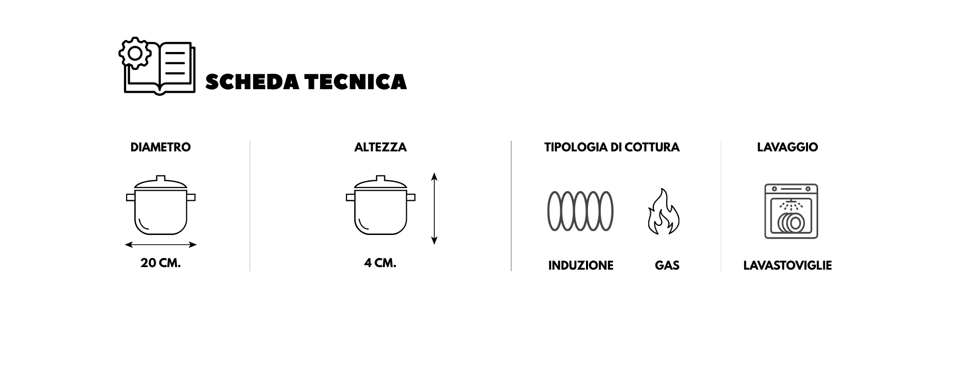 Compatibilità piani cottura: adatta a induzione, gas, elettrico e vetroceramica — ideale per le cucine multistazione tipiche del settore HO.RE.CA.