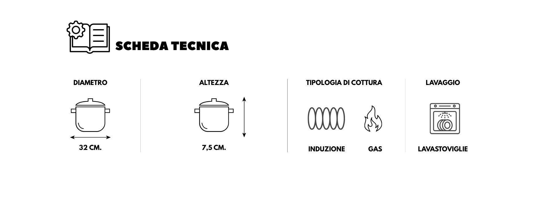 Compatibilità piani cottura: adatta a induzione, gas, elettrico e vetroceramica — ideale per le cucine multistazione tipiche del settore HO.RE.CA.