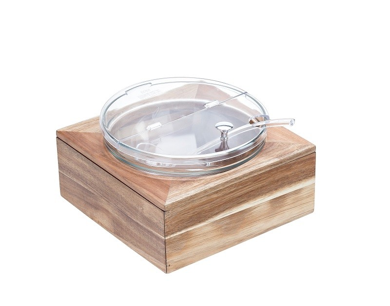 ACACIA YOGURTIERA CON BASE CM.26X26 NATURALE CON CIOTOLA IN VETRO E CUCCHIAIO IN PLEXIGLASS LEONE