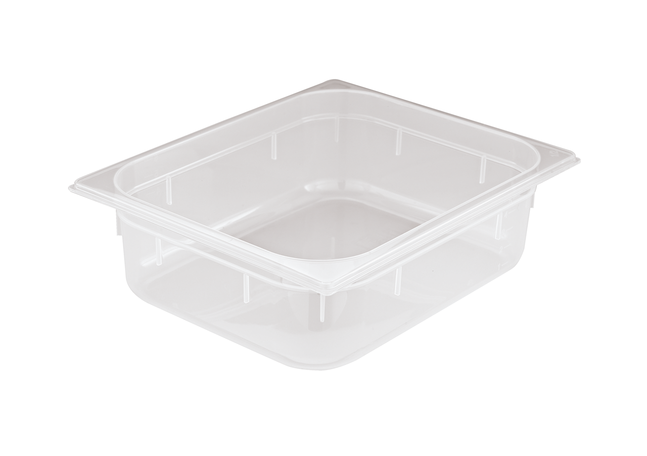 La bacinella Gastronorm GN 1/6 Paderno in polipropilene trasparente, con capienza 1,2 litri e scala graduata, è ideale per preparazione, conservazione e servizio degli alimenti in cucina professionale, garantendo igiene, resistenza e compatibilità Gastronorm.