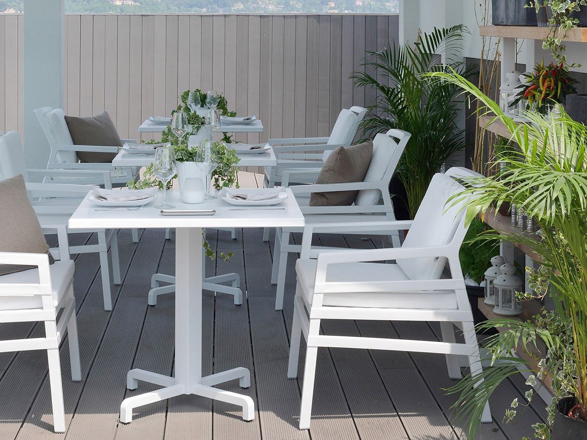 Compatibile con una vasta gamma di piani (Ø60, Ø70, Ø80 cm e quadrati 60x60, 70x70, 80x80 cm), la base tavolo Nardi offre estrema flessibilità progettuale. Questa caratteristica consente di personalizzare gli ambienti scegliendo liberamente il tipo di piano più adatto alle esigenze estetiche e funzionali.