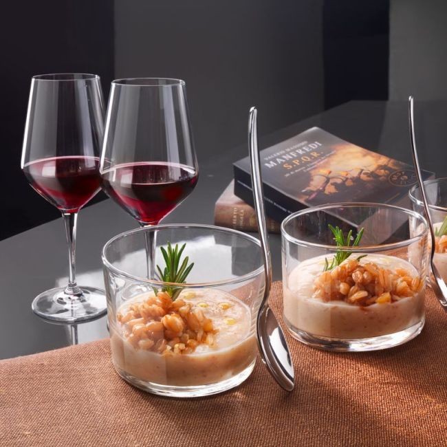 Il formato mini lo rende perfetto per amari e liquori con ghiaccio, come il mirto, il vino «della casa» e per il finger food.