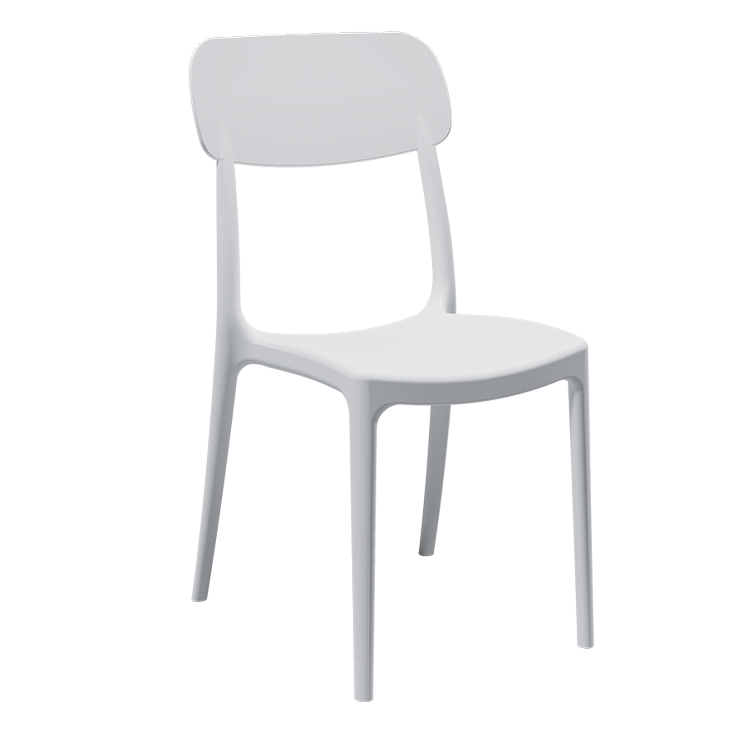 Il suo schienale pieno, caratterizzato da un design minimalista e da una piacevole curvatura arrotondata, offre un comfort naturale e una seduta equilibrata. La struttura in polipropilene garantisce resistenza, facilità di pulizia e lunga durata, risultando ideale per un utilizzo frequente e intensivo.