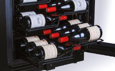 Frigo vetrina da 421 litri con elegante struttura in lamiera preverniciata nera e interno in ABS nero. Dotato di refrigerazione ventilata e doppia temperatura, regolabile tramite termometro digitale e touch screen. Include una porta reversibile con doppio vetro temperato, luce LED interna, e 10 mensole in metallo a "Z" con estrazione a cassetto. Capacità per 116 bottiglie da 75 cl, ideale per ristoranti e bar.