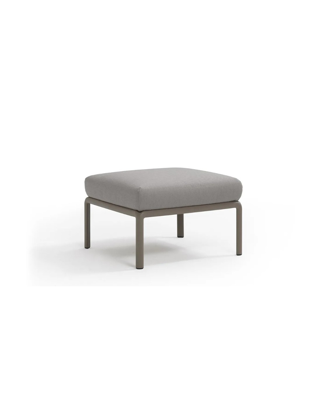 Il Pouf Komodo di Nardi, colore tortora con cuscino grigio in tessuto Sunbrella, è una seduta professionale modulare ideale per il settore HO.RE.CA..