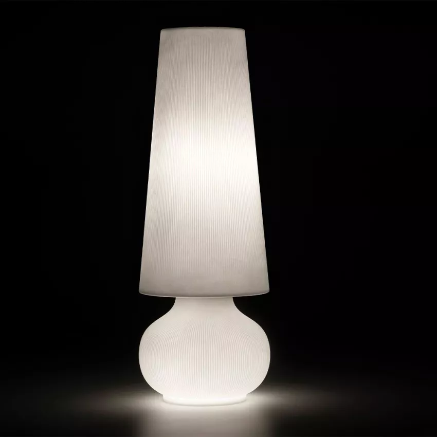 La lampada da terra Fade si distingue per la sua estetica semplice ma di grande fascino. La superficie rigata della base è una caratteristica distintiva che riflette l'essenza della collezione Fade, creando un gioco dinamico di luci e ombre.