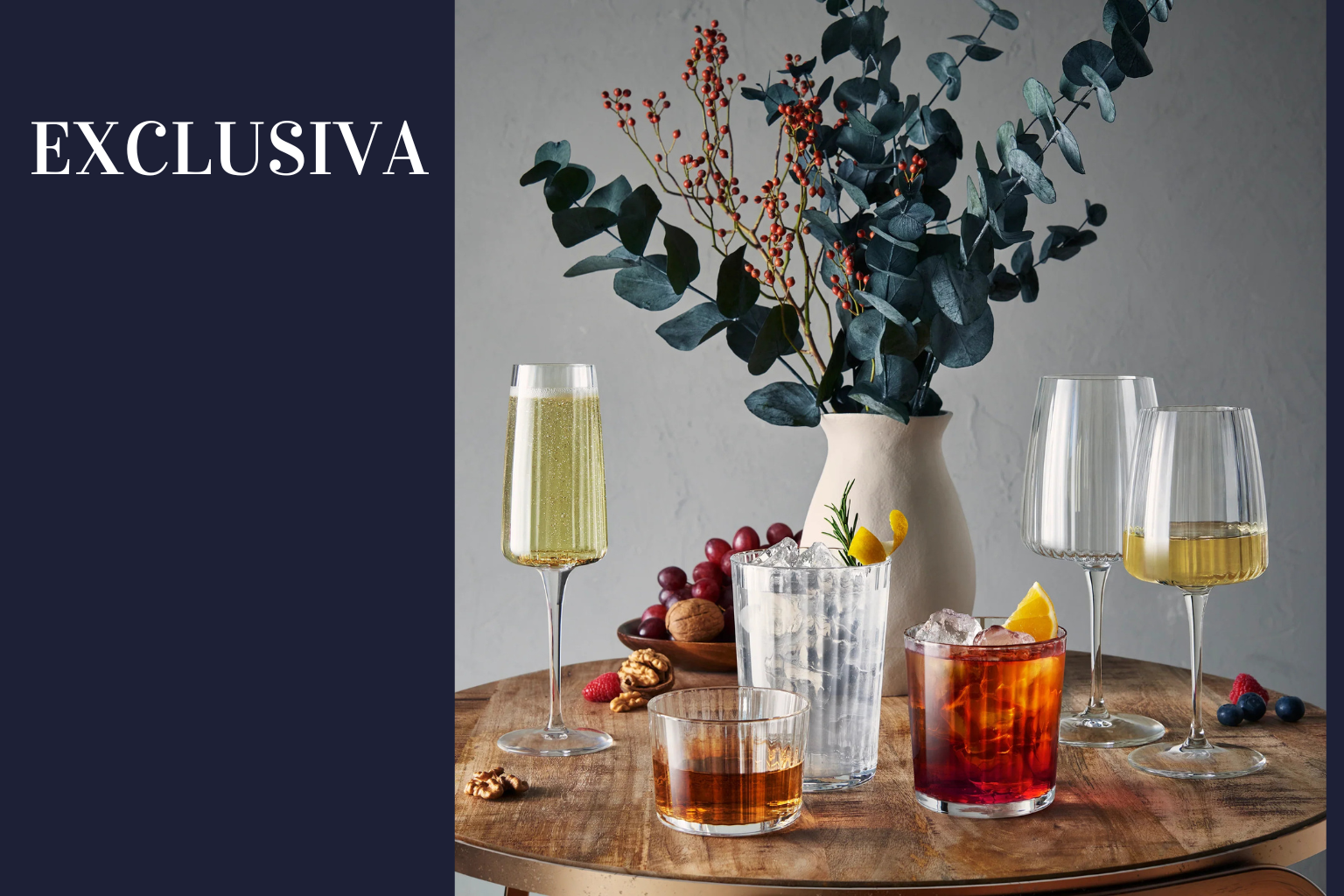 Stile e praticità in ogni dettaglio: calici e bicchieri resistenti, eleganti e versatili, ideali per valorizzare vini, cocktail e bevande nel servizio quotidiano.