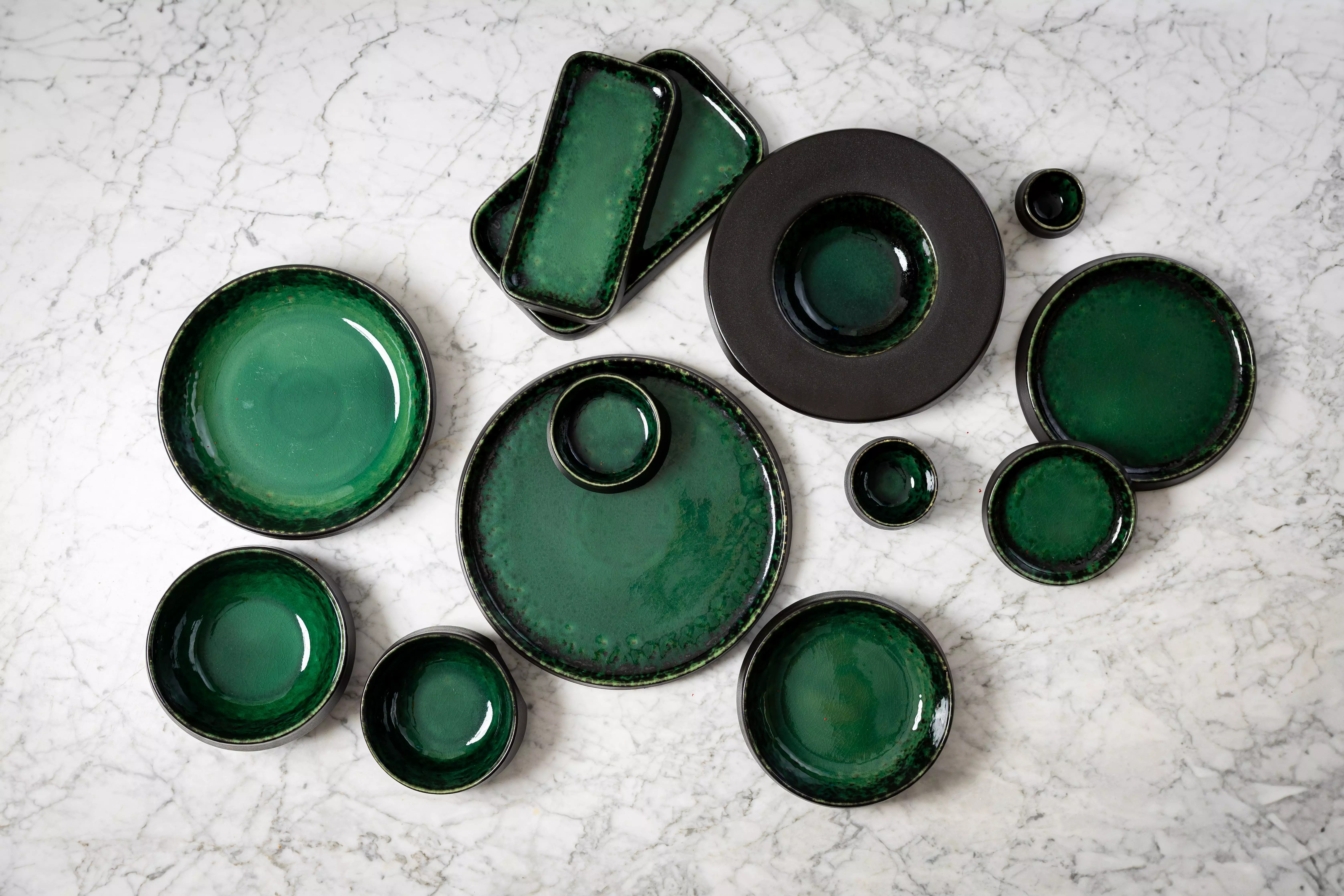 La coppetta rotonda Deimos di Le Coq, in porcellana nero e verde, misura 9,5 cm di diametro per 5 cm di altezza.