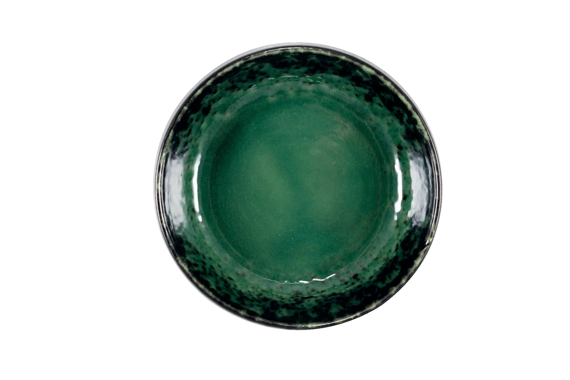 La finitura nero e verde, intensa e multisfaccettata, crea un effetto visivo sorprendente che valorizza i colori degli alimenti. Il piatto è realizzato in stoneware, un gres porcellanato ad alta resistenza, pensato per l’uso quotidiano e professionale. Il decoro sottosmalto ne preserva la brillantezza e lo rende resistente a graffi, lavaggi frequenti e alte temperature, permettendo l’uso in lavastoviglie e microonde senza alterarne l’estetica.