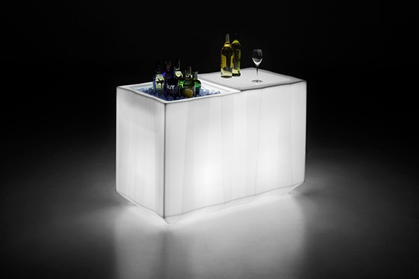 Tavolo/Contenitore Ghiaccio Catering Frozen di Plust, in polietilene neutro, ideale come piano d’appoggio o contenitore ghiaccio.