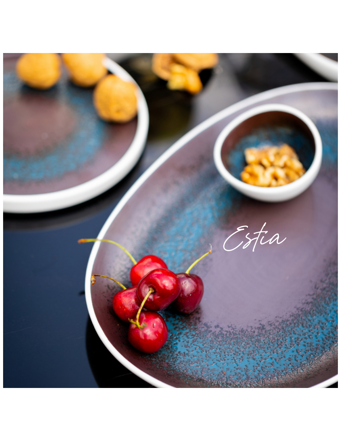 La Coppetta Obliqua Estia Blu Reattivo in Porcellana è l'elemento perfetto per aggiungere un tocco di eleganza e raffinatezza alla tua tavola. Con la sua finitura blu reattivo unica e il design obliquo, è ideale per servire una varietà di piatti, da dessert a antipasti, e si presta anche come oggetto decorativo. La porcellana premium e la facilità di pulizia la rendono perfetta sia per l'uso quotidiano che per occasioni speciali.