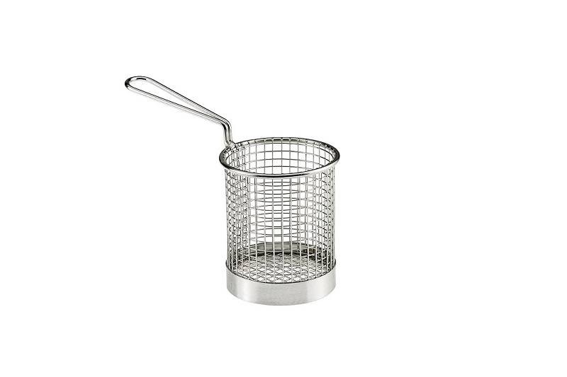 Il cestello in acciaio di Leone è un elegante mini cestello rotondo per fritti, dal diametro di 9 cm e altezza 10,5 cm, ideale per presentare patatine, finger food o snack in modo professionale in ambienti Ho.Re.Ca.. Realizzato in acciaio inox, garantisce resistenza, igiene e un effetto visivo curato per ristoranti, pizzerie e street food.
