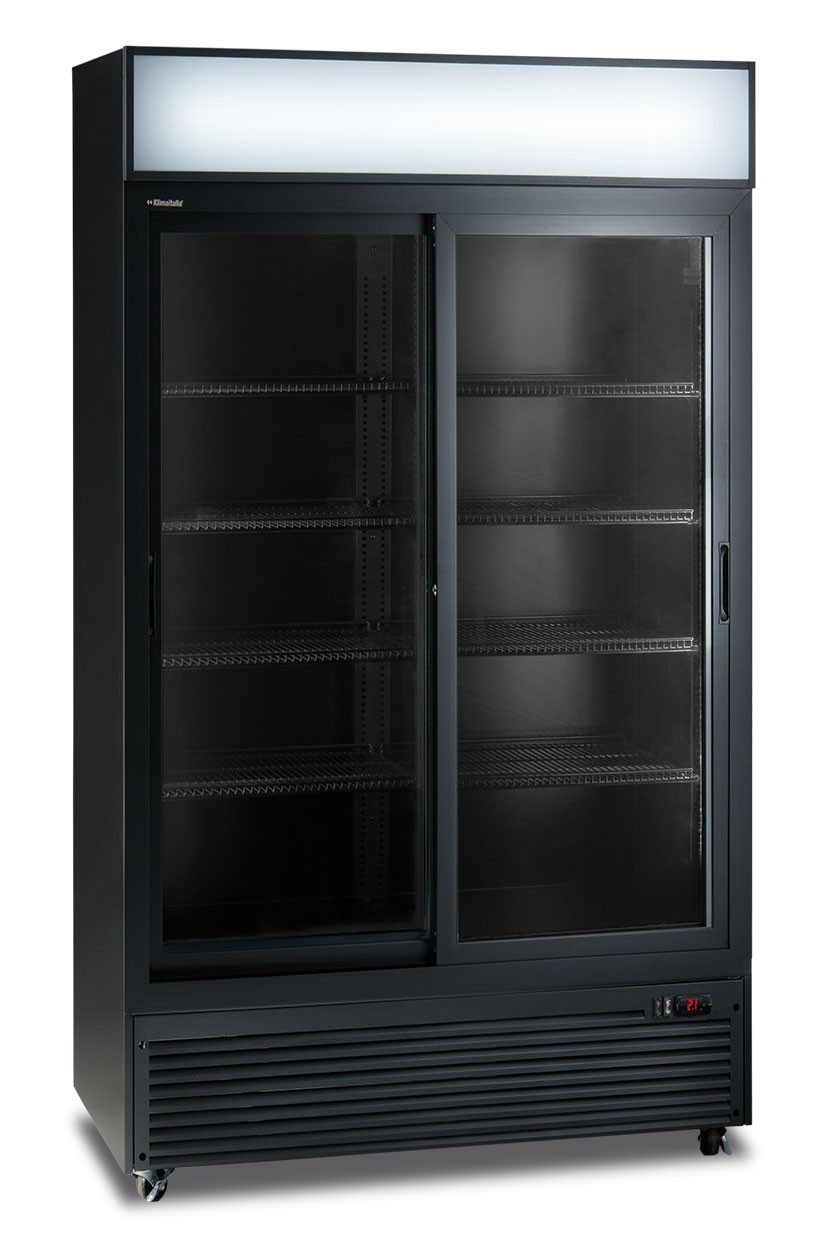 Frigo vetrina da 670 litri con struttura in acciaio verniciato nero e interno in alluminio verniciato. Dotato di refrigerazione ventilata, termometro digitale, e regolatore elettronico. Include due porte scorrevoli con doppio vetro temperato, sbrinamento automatico e luce LED. Accessoriato con 8 griglie plastificate e ruote per facilità di movimento. Ideale per grandi spazi commerciali e ristorazione. Disponibile con optional per configurazione "Transizione 4.0".