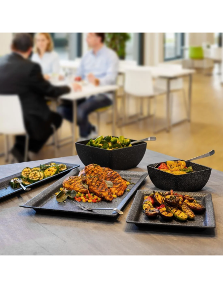Questo vassoio è perfetto per chi cerca praticità e stile nella presentazione di cibi, combinando una grande funzionalità con un’estetica sofisticata.