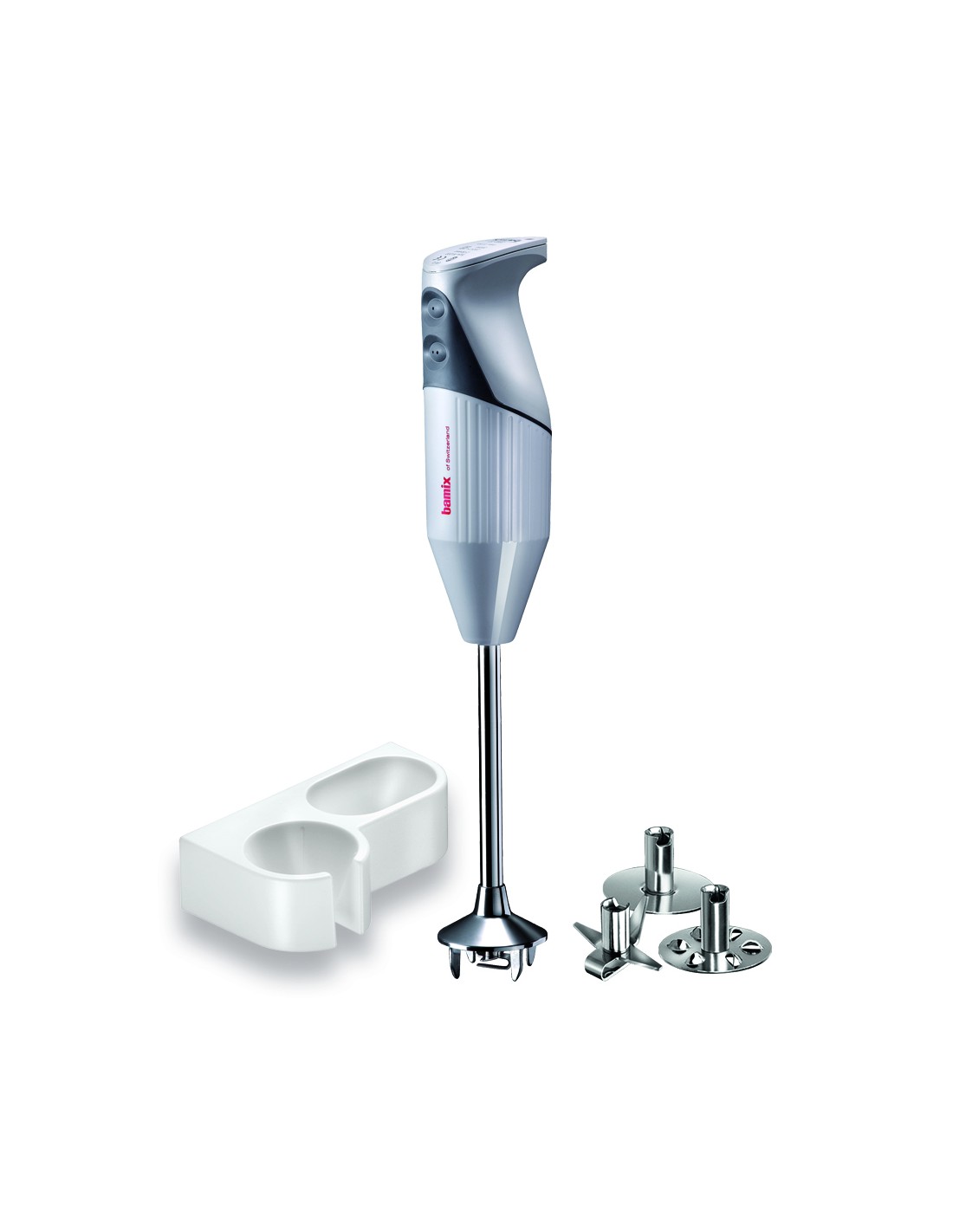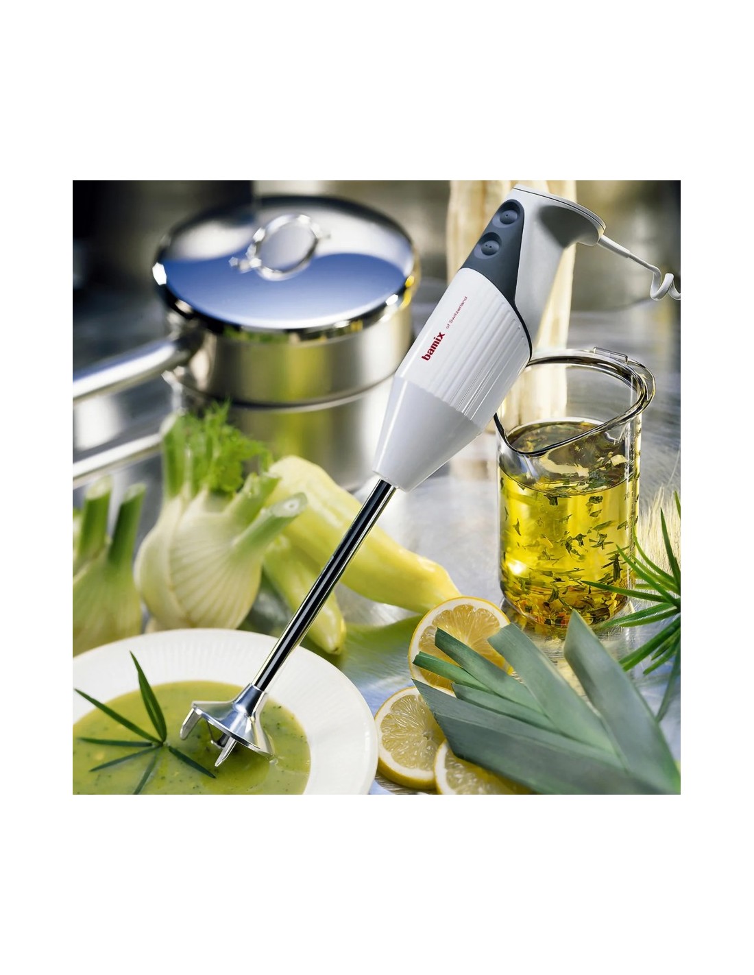 Il Bamix Gastro 200 bianco (BX G200) è un frullatore a immersione professionale da 200 W con due velocità (12.000 / 17.000 giri/min), asta da 19 cm, corpo in nylon termoresistente e garanzia 25 anni. Uno strumento compatto, performante e affidabile per cucine professionali e ambienti HO.RE.CA.