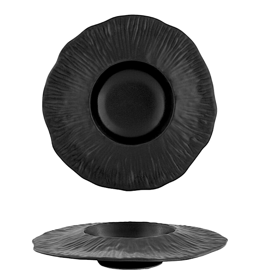 Realizzata in porcellana di alta qualità, si distingue per la sua finitura nera opaca, che dona un aspetto deciso e moderno alla tavola.