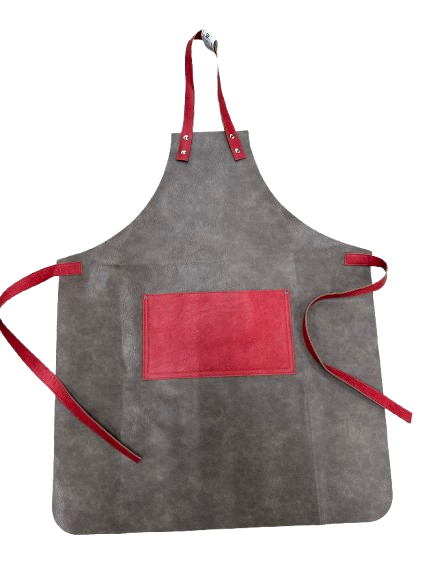 Grembiule Wosde taglia unica tortora con pettorina, con tasca frontale e lacci rosso fuoco.