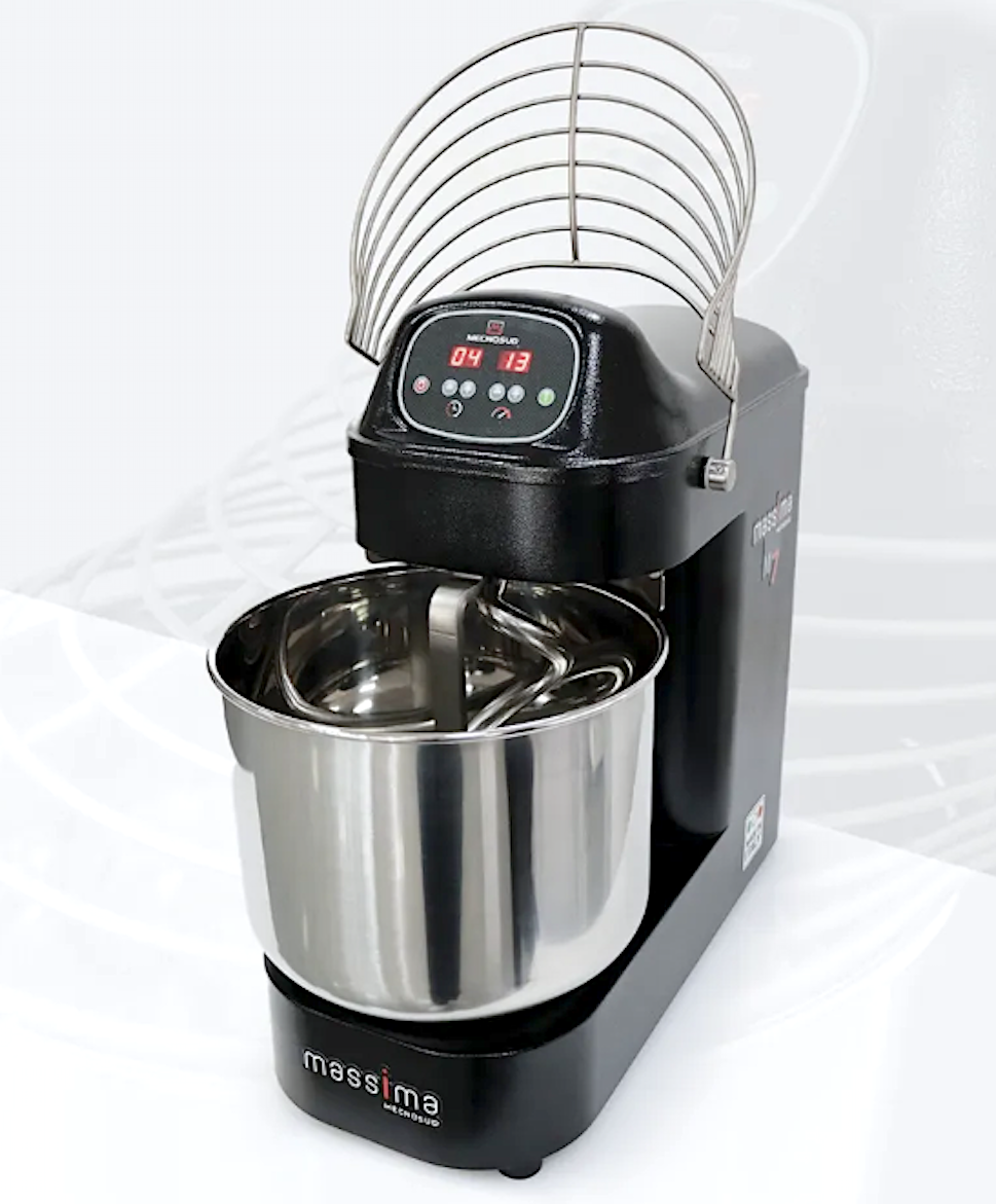 L’Impastatrice a spirale Massima M7 di Mecnosud è una macchina professionale ideale per il settore HO.RE.CA., con capacità di 7 kg (10 litri), vasca con fondo semi-sferico, variatore di velocità a 15 posizioni (da 90 a 280 rpm) e timer digitale. Progettata per impasti ad alta idratazione, unisce affidabilità, silenziosità e competenza tecnica per panifici, pizzerie, pasticcerie e gastronomie.