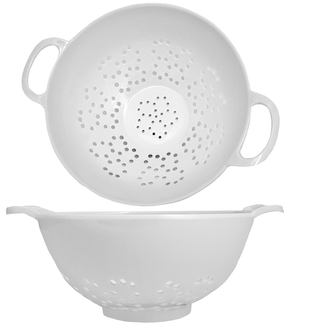 Lo Scolapasta in Melamina di Leone, con un diametro di 19,7 cm e altezza di 7,5 cm, è realizzato in melamina resistente e di colore bianco.