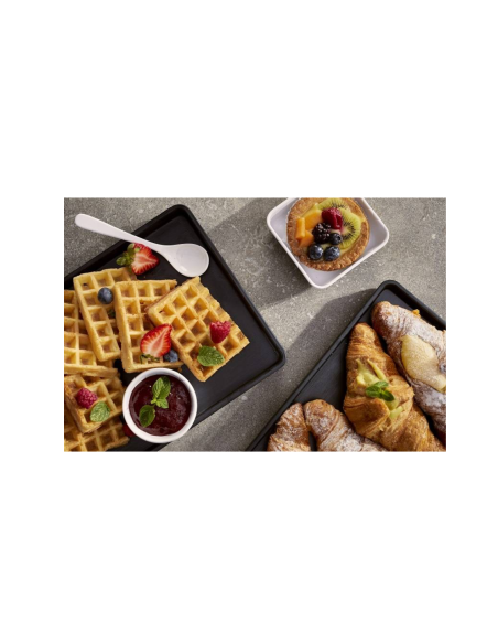 Vassoio rettangolare in melamina, perfetto per pasticcieria elegante e versatile, dal grande impatto estetico, ideale nella ristorazione professionale per dare un tocco originale e raffinato alla presentazione dei cibi.