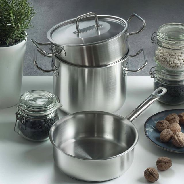 Dotata di maniglie rinforzate, bordo antigoccia e finitura satinata, è adatta a tutti i piani di cottura, inclusa l’induzione.