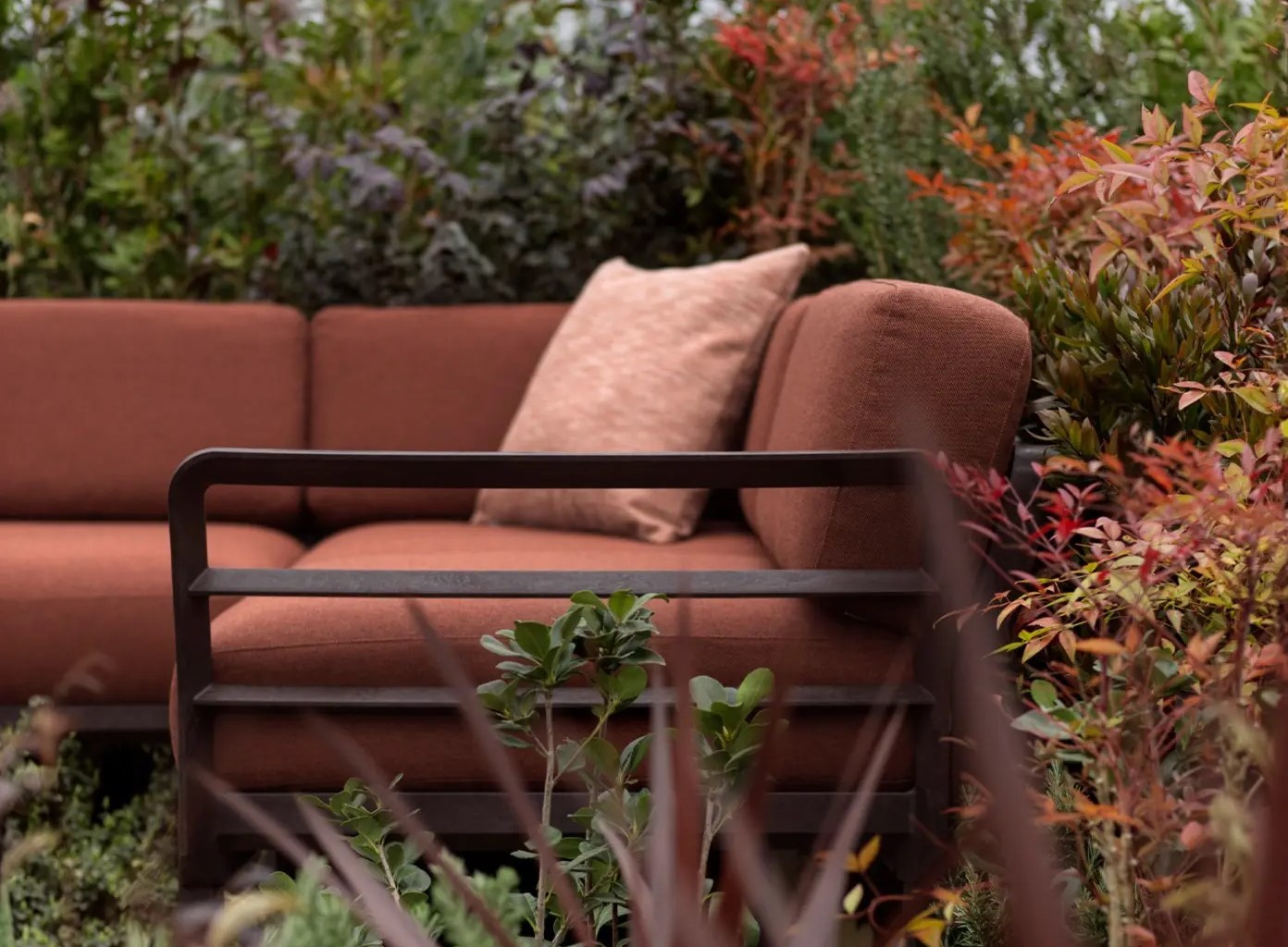 Con una struttura in resina rigenerata e cuscini sfoderabili, misura 90 x 94 cm con un’altezza di 79 cm.