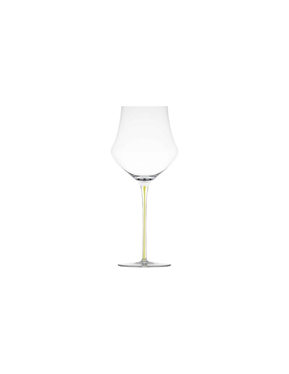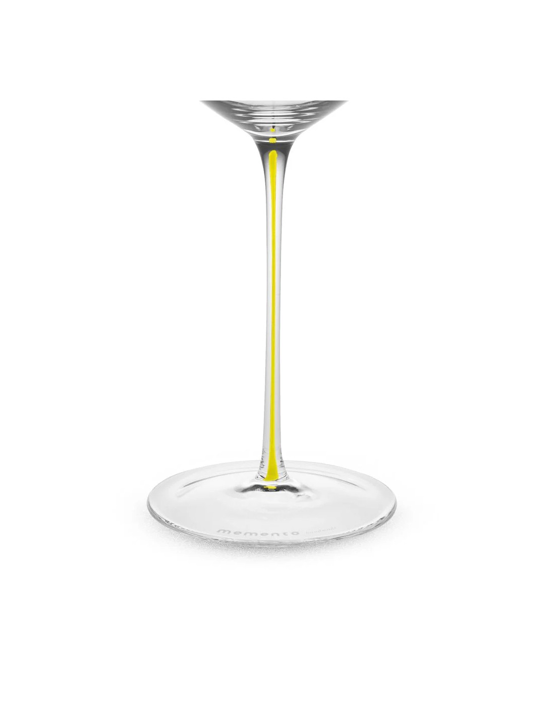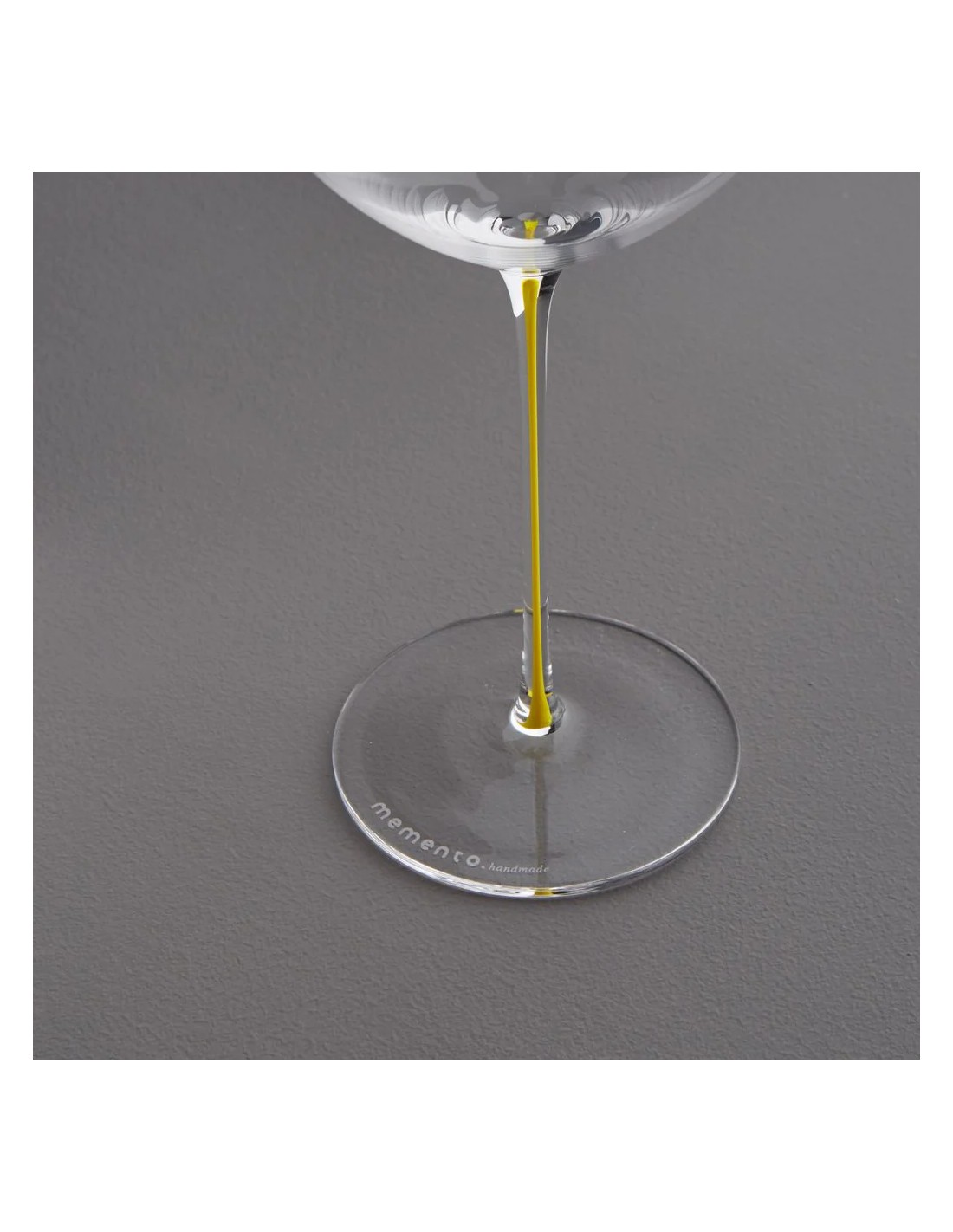 Il calice Memento Wine Giallo di Serafino Zani è un raffinato calice in cristallo soffiato a mano, con anima color giallo fusa nello stelo.