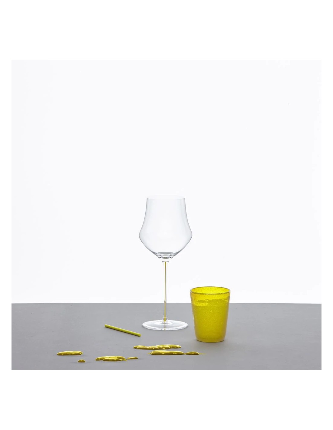 Il calice Memento Wine Giallo di Serafino Zani nasce per unire l’eleganza del cristallo artigianale al linguaggio del colore tipico della collezione Memento.