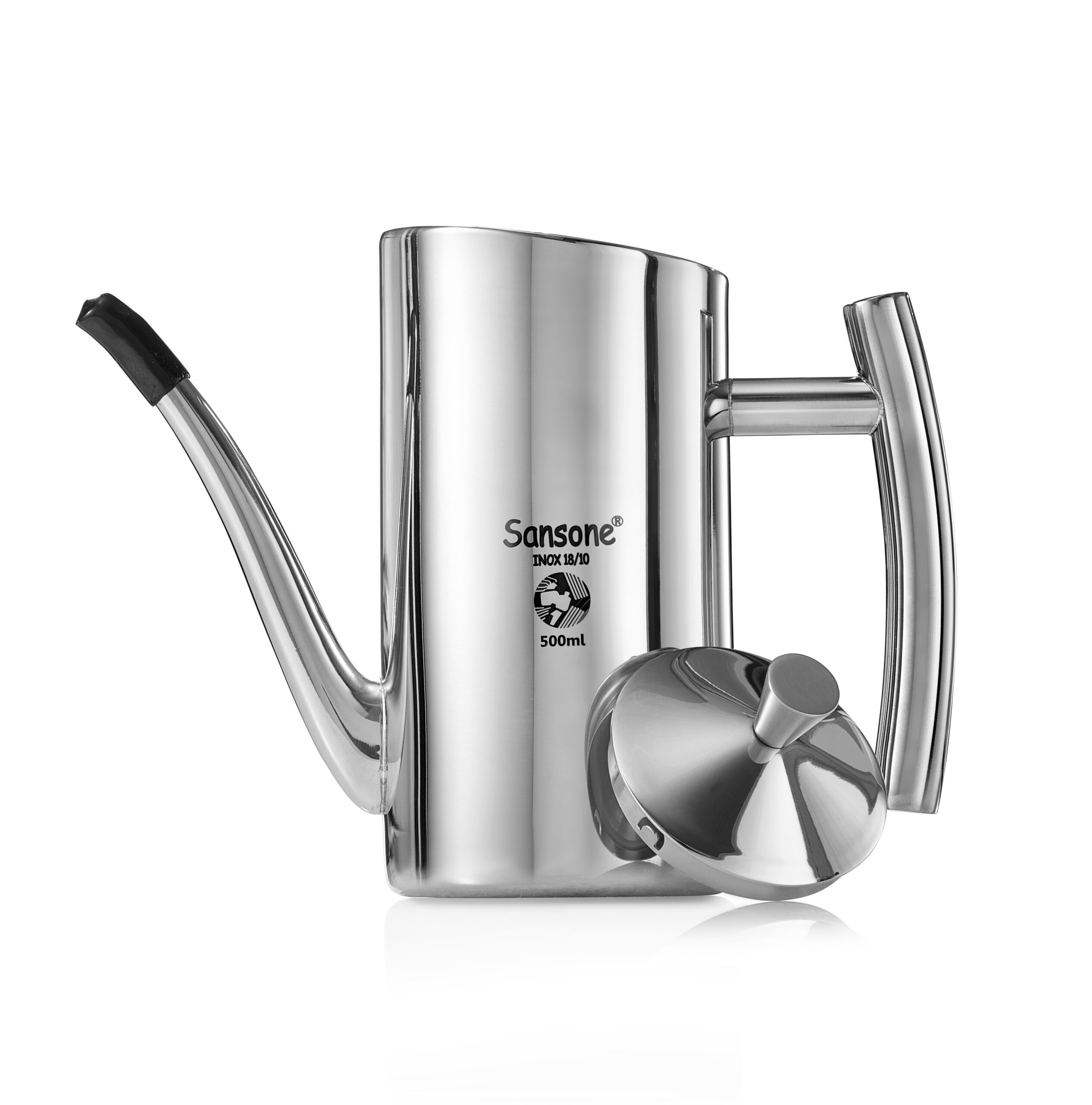 L'oliera Sansone Lux da 500 ml è realizzata in acciaio inox di alta qualità, garantendo durabilità e igiene. Con un design innovativo, è ideale per uso domestico e professionale. Include un coperchio rimovibile e un tappino in PVC per un beccuccio sempre sigillato.