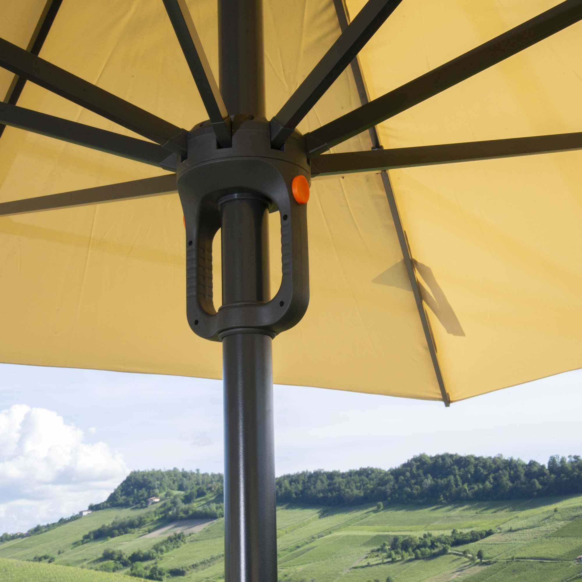 Il Mike Vacchetti è un ombrellone professionale 4 × 4 m con palo centrale in alluminio verniciato e telo in poliestere 250 g/m² color sabbia. Grazie alle 8 robuste stecche e all’apertura push-up assicura ombra ampia e stabilità, diventando la scelta ideale per bar, ristoranti e grandi dehors.