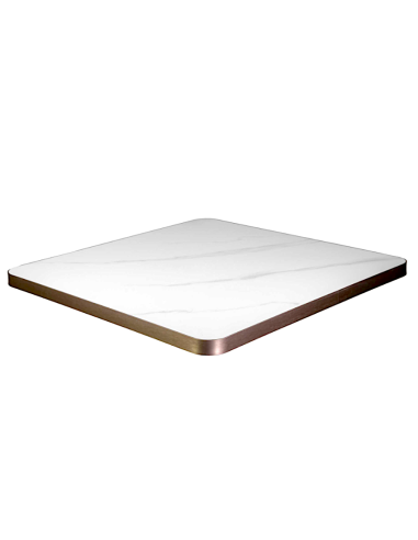 PIANO TAVOLO PIETRA SINTERIZZATA CM.80X80 EFFETTO MARMO BIANCO BORDO ORO