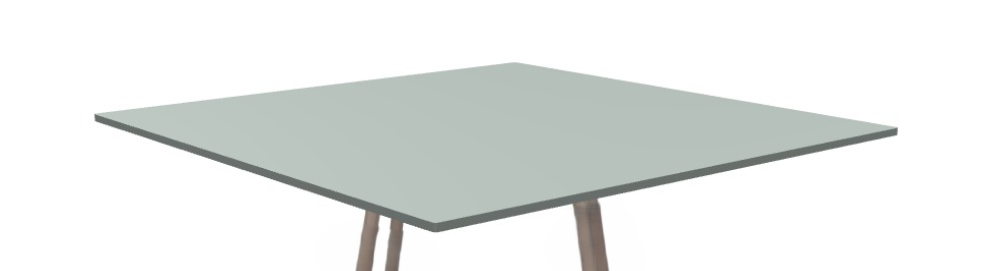 Il piano stratificato Compact di SCAB, nel colore verde quarzo, misura 80 x 80 cm con bordo piatto e spessore di 10 mm.