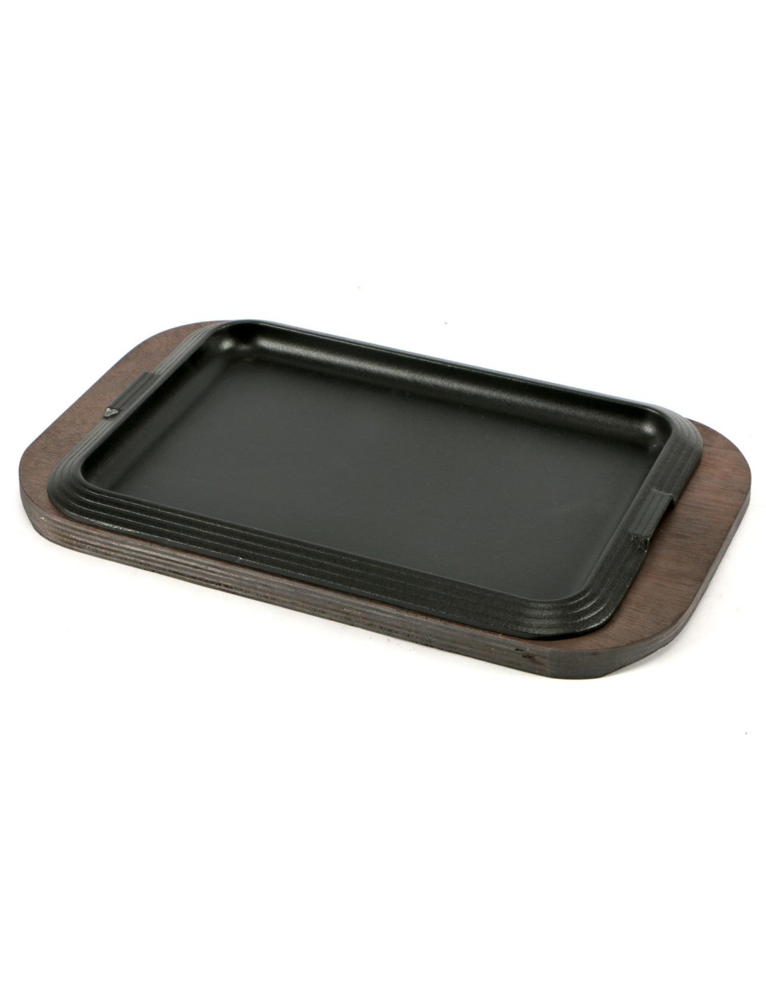 Il piatto a servire rettangolare in ghisa Basic ILSA, di 30 x 22 cm, con vassoio in legno, unisce robustezza e stile rustico, ideale per presentare piatti caldi e freddi in modo raffinato.