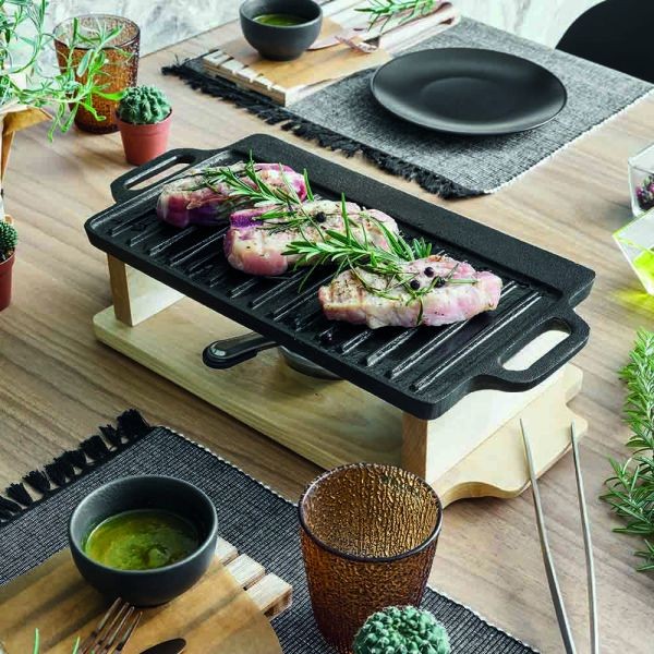 PIASTRA GRILL IN GHISA NERO CON BASE LEGNO CM.33X20 FUSION TASTE TOGNANA