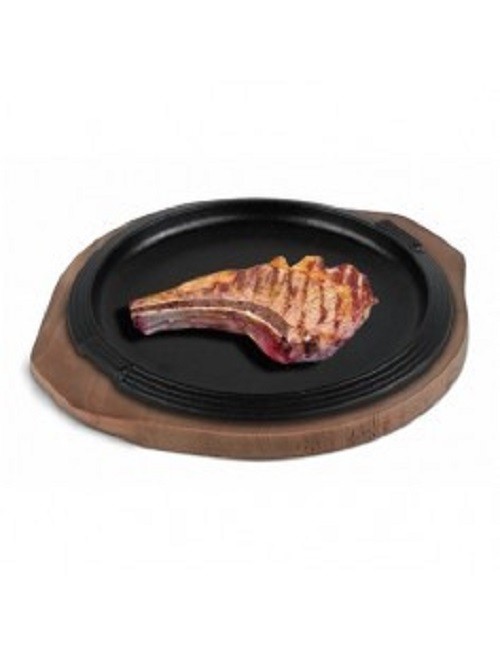 PIASTRA DI GHISA TONDA CM.30 H.2,8 CON BASE IN LEGNO DI ACACIA COMAS