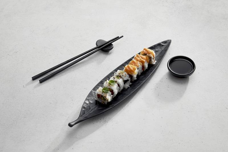 VASSOIO PIATTO A FOGLIA CM.41X9,5X3 MELAMINA NERO LEONE