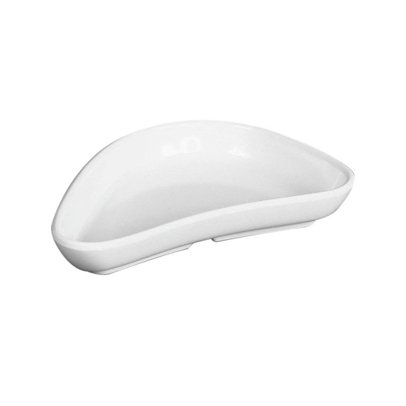 Piattino in melamina di colore avorio, dimensioni 12,6 x 8,2 cm, ideale per presentazioni eleganti in ambienti domestici e professionali.
