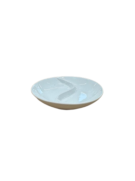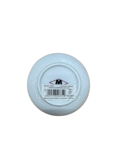 Il piattino a 2 scomparti Morini è realizzato in porcellana bianca lucida. Con un diametro di 9,1 cm e un'altezza di 1,9 cm, è perfetto per servire piccoli snack, salse o condimenti in modo elegante e funzionale.