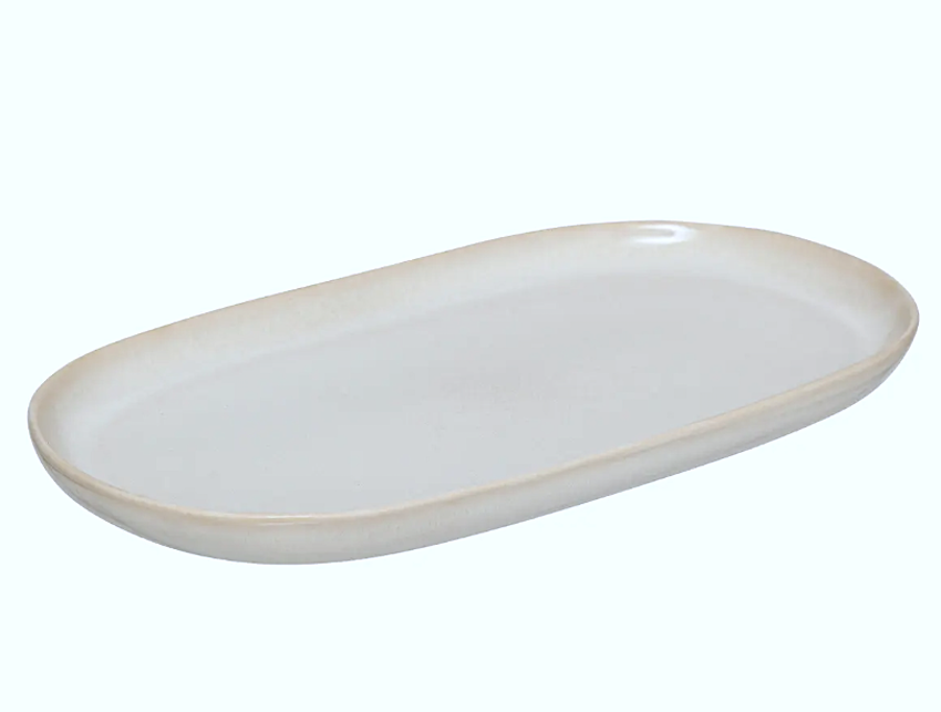 Il piatto ovale Terre di Secret de Gourmet, nella versione beige, unisce design raffinato e praticità.
