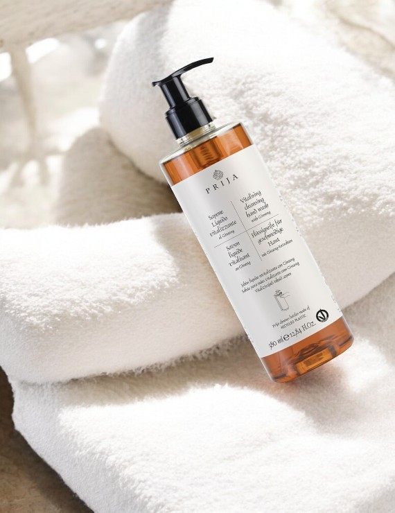Deterge delicatamente e rivitalizza grazie all'estratto di ginseng e alla fragranza Prija. Prodotto 100% made in Italy in flacone riciclato con erogatore ricaricabile. Certificato VEGANOK.