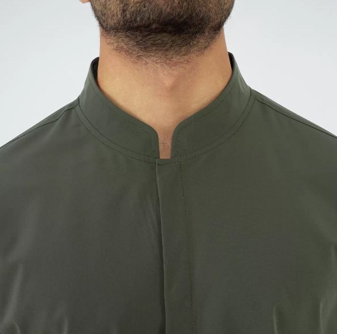 Collo e Taglio: Il collo coreano, con taglio a squadra, conferisce alla giacca un aspetto moderno ed elegante.