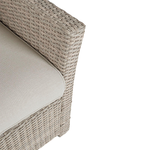 Il colore naturale della fibra sintetica e dei cuscini si abbina bene con la maggior parte degli ambienti esterni, offrendo un look raffinato e contemporaneo.