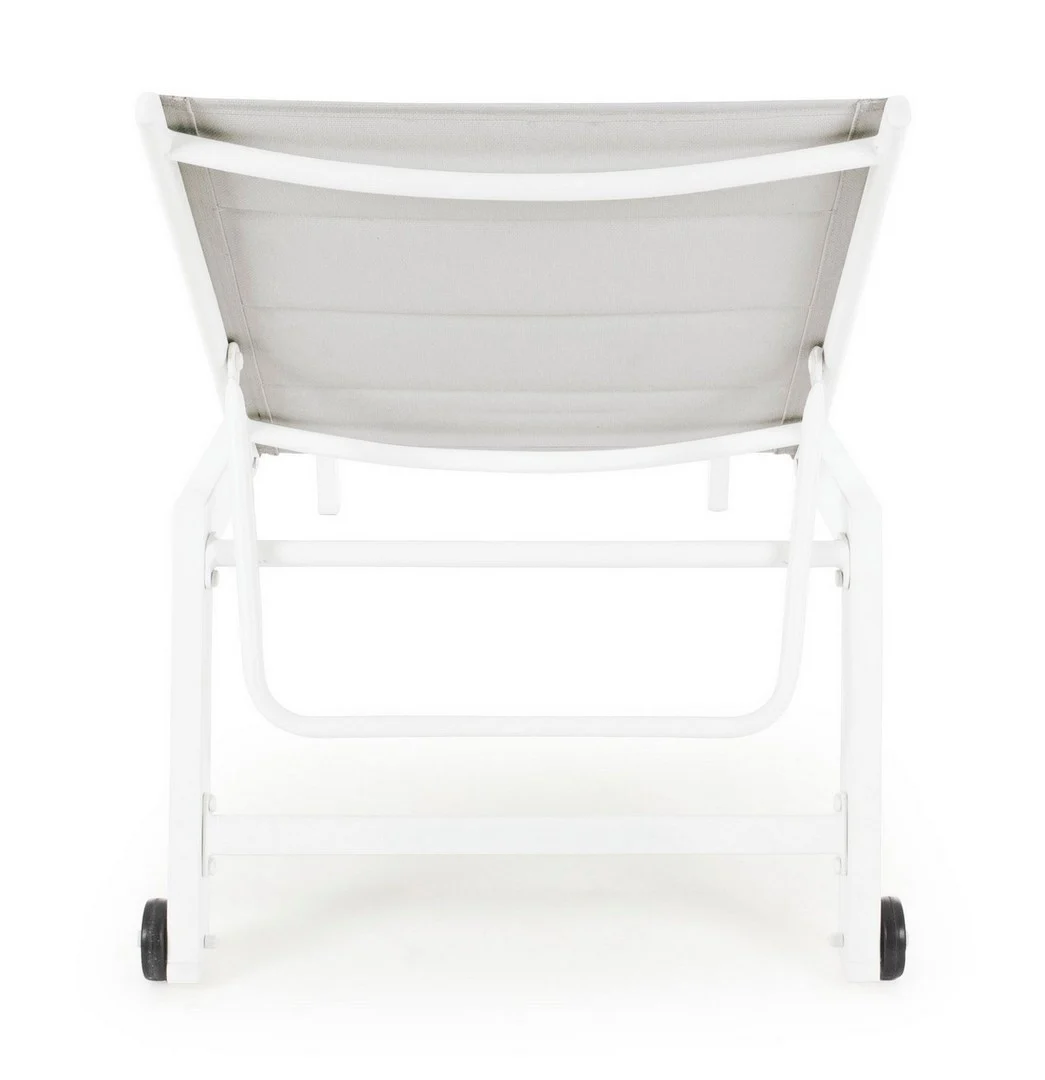 La struttura del lettino è realizzata in alluminio verniciato a polvere con poliestere, il che garantisce una lunga durata e resistenza agli agenti atmosferici.