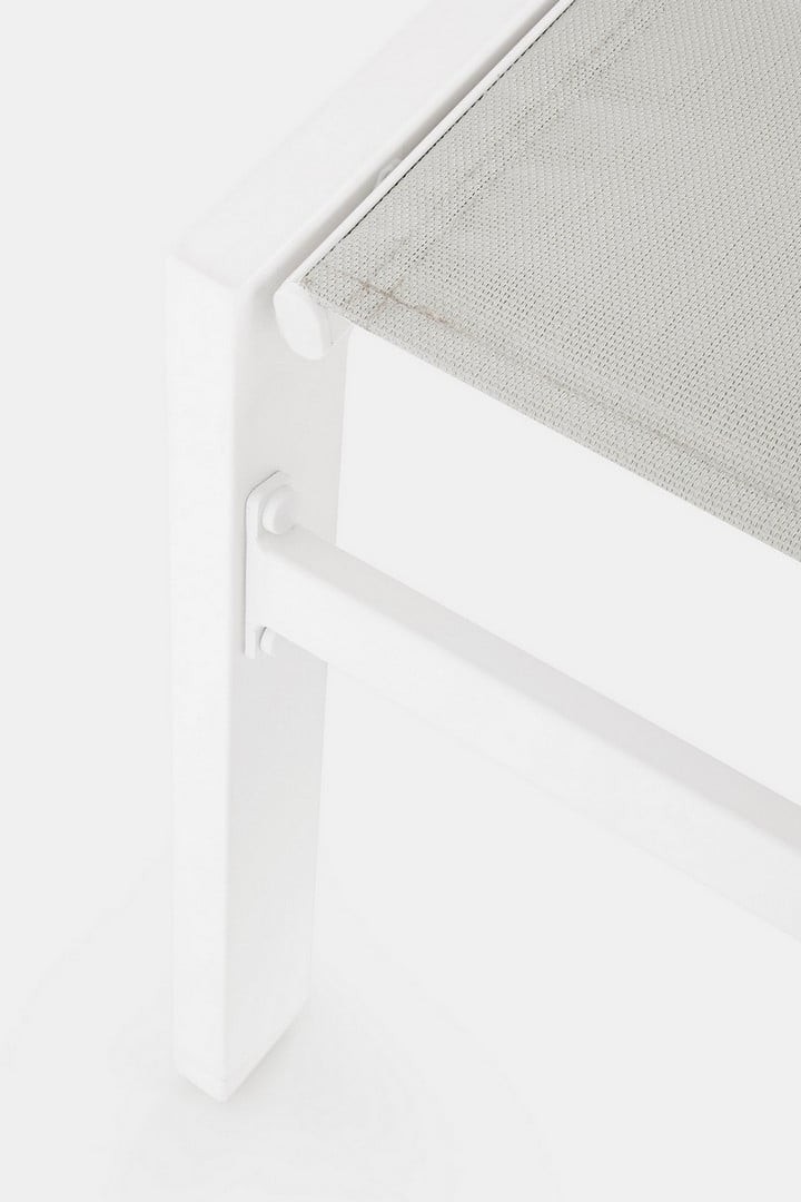 La seduta e lo schienale del lettino sono realizzati in textilene 2x1 con imbottitura, un tessuto traspirante, resistente e facile da pulire.