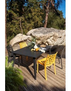 Sedia in Polipropilene Matrix Senape Impilabile. Leggera, resistente e ideale per interni ed esterni. Il colore senape aggiunge un tocco di vivacità, mentre la funzione impilabile la rende facile da riporre. Resistente agli agenti atmosferici e ai raggi UV.