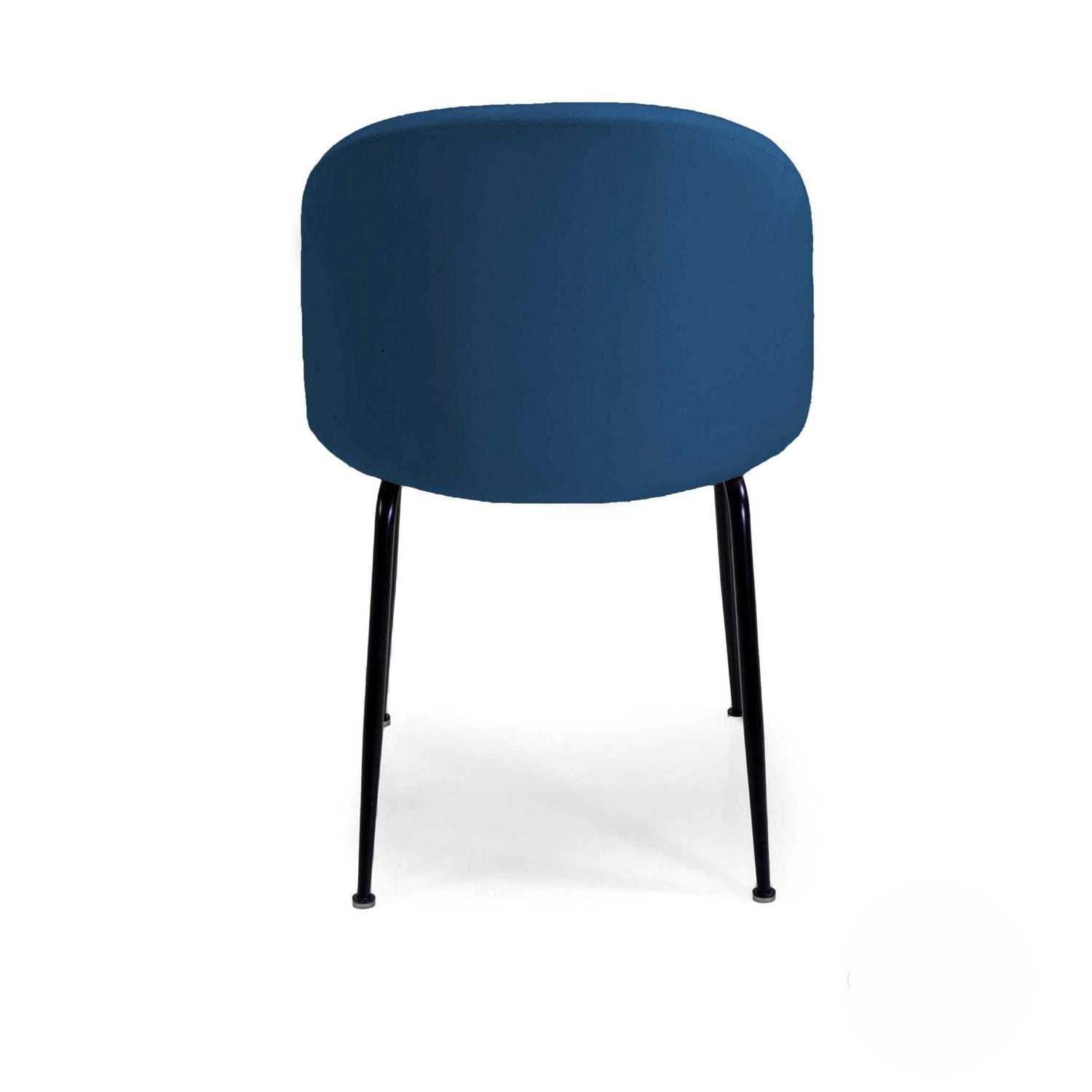 La sedia Michelle in elegante blu con struttura nera offre un'esperienza di seduta confortevole grazie alla sua imbottitura in schiuma e al rivestimento in tessuto effetto velluto.