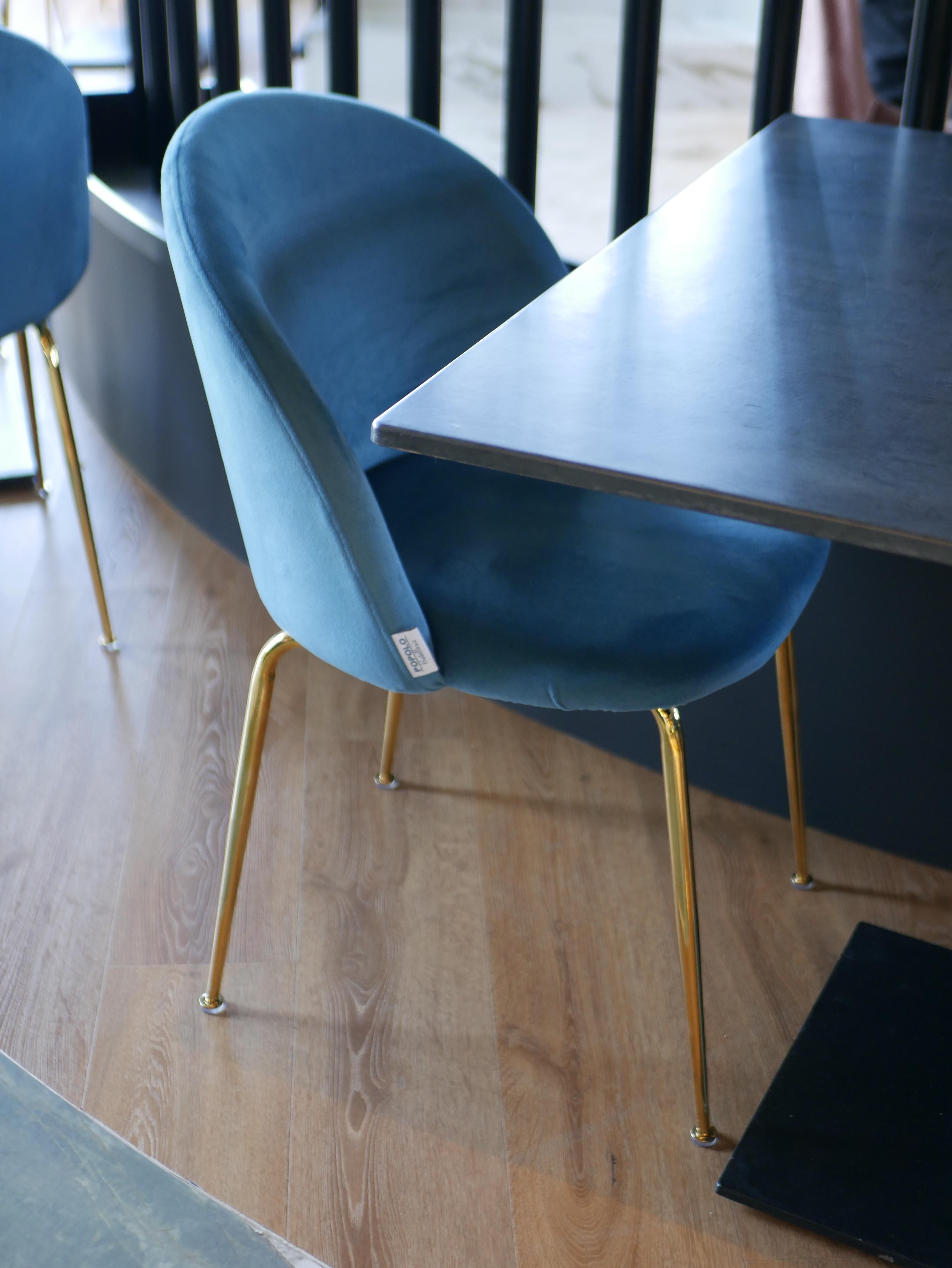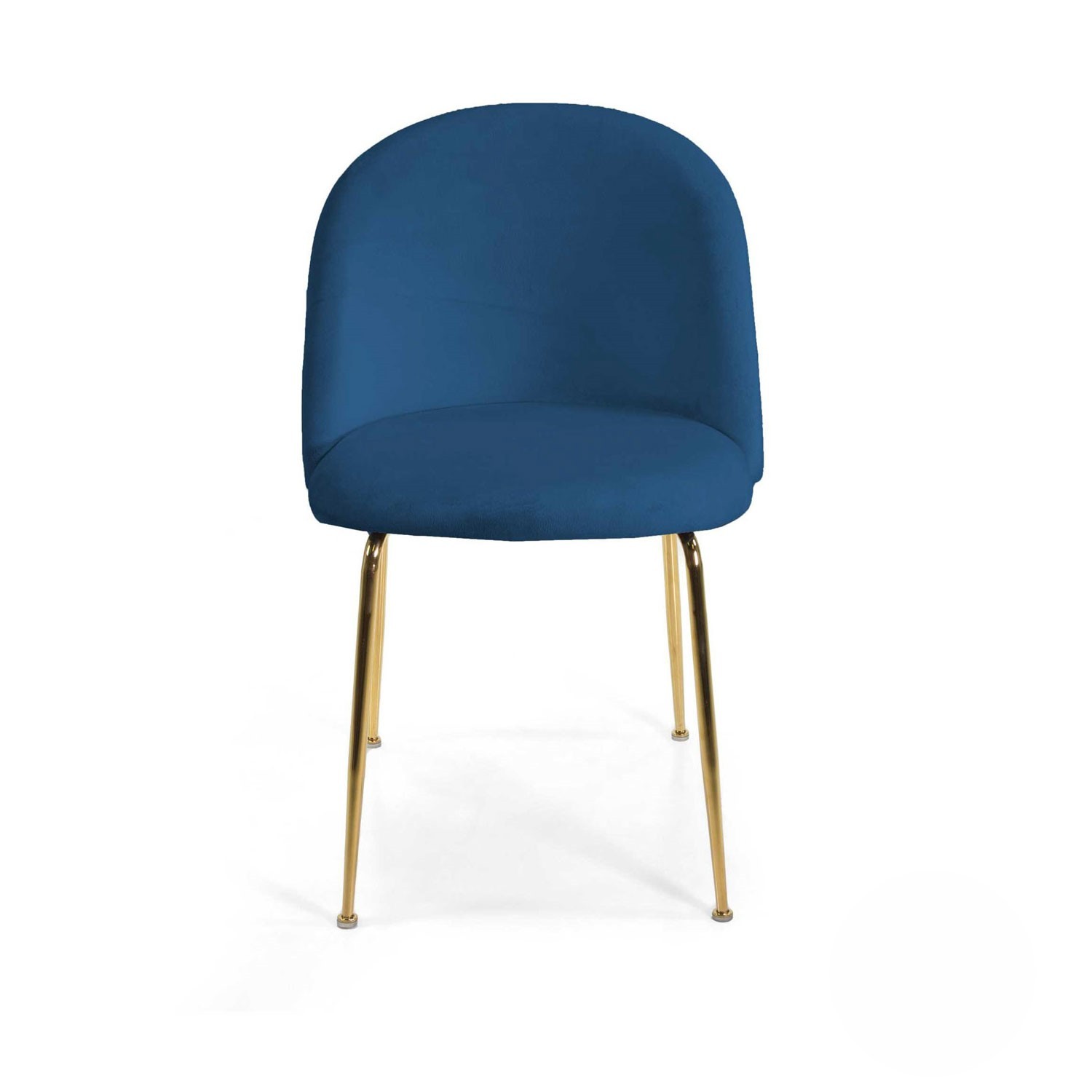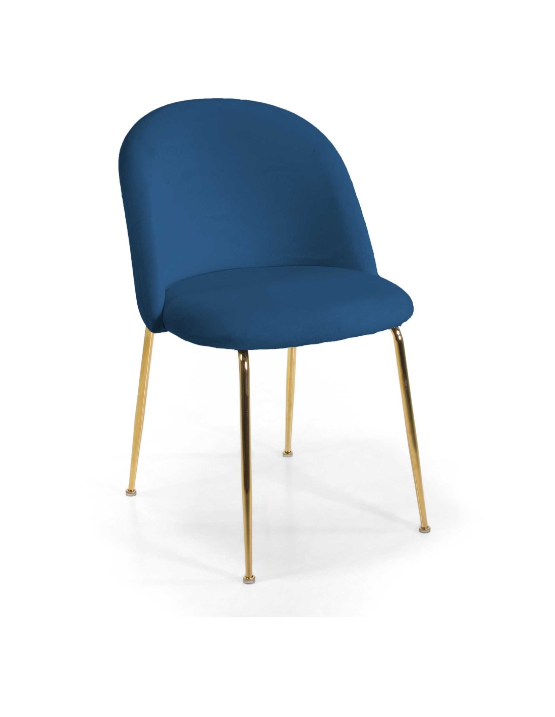 La sedia Michelle in elegante blu con struttura oro offre un'esperienza di seduta eccezionale grazie all'imbottitura in schiuma e al rivestimento in tessuto effetto velluto.